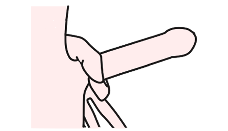 手順④ ペニスを挿入してベルトをカリに引っ掛ける
