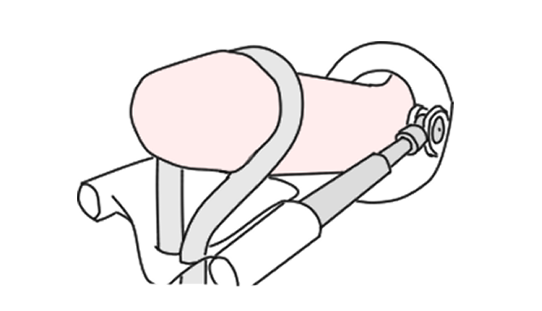 最後に締めたシリコンベルトの余分を裏側のベルトロック部分に固定します。あとは手を放しても牽引状態を維持することが出来ます。