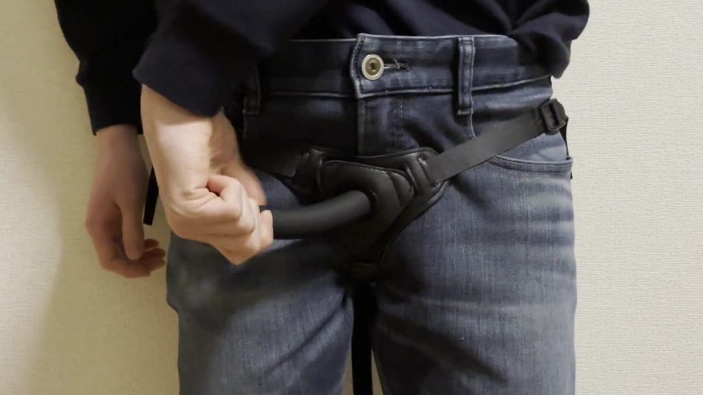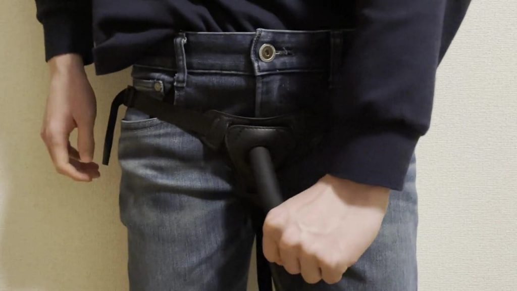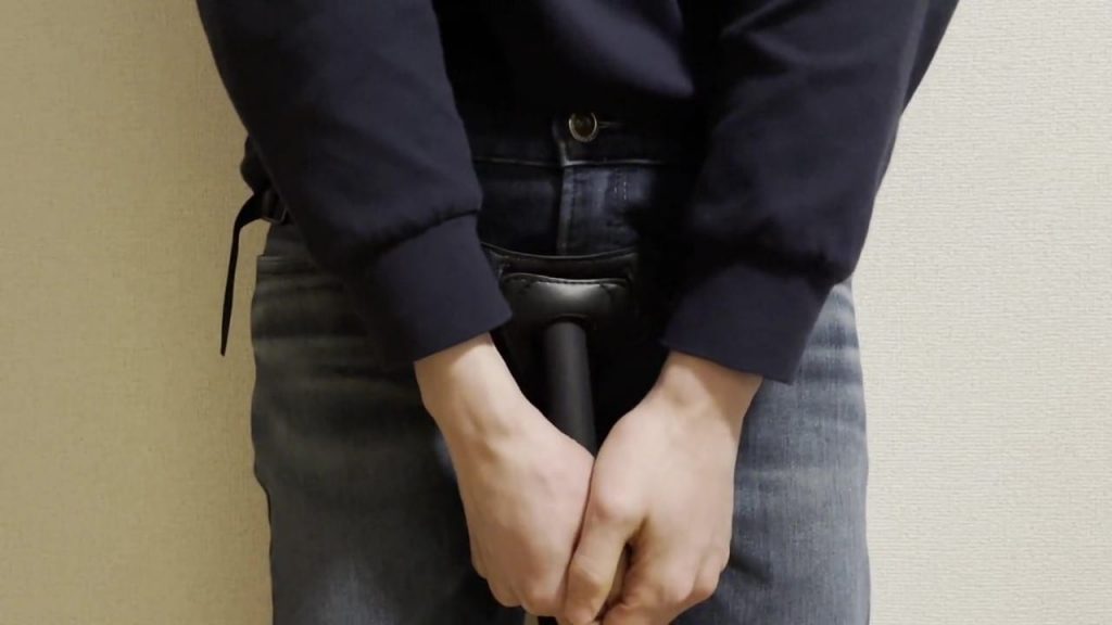 ①ペニスを握るところまではダイレクトストレッチと同じです。まずは下へ牽引します。ペニスの根元を引っ張るイメージを意識しましょう。